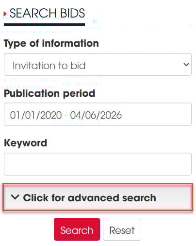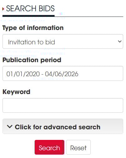 ***Note: Depending on the specific tender package posted, the information provided will vary. Some tender packages only have the Invitation to Invitation to bid and the Contractor selection plan posted; therefore, it is recommended that bidders search using these two pieces of information. Only if these are not found should they switch to other information types.